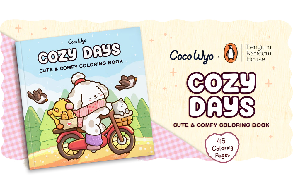 Color your way through your very own cozy day in the wonderfully adorable pages of this brand new coloring book from the bestselling Coco Wyo!